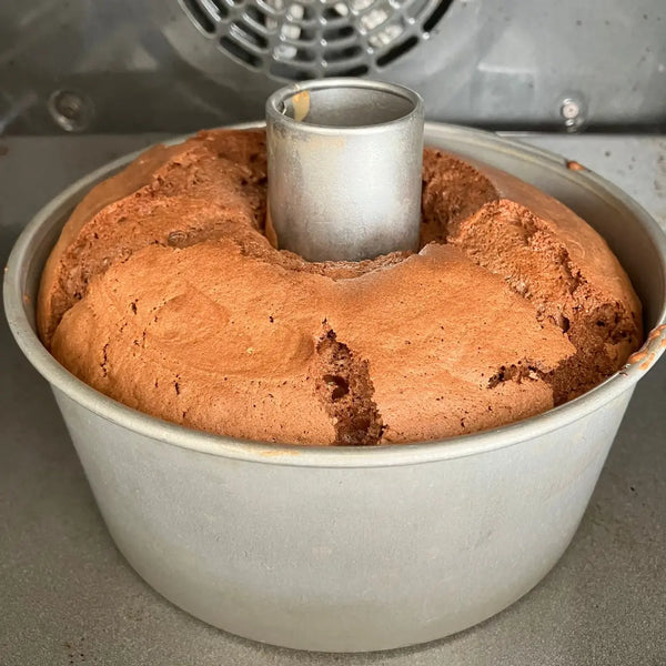 Chiffon cake looks unique with its height and a central hole, resembling a donut.