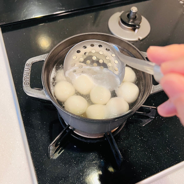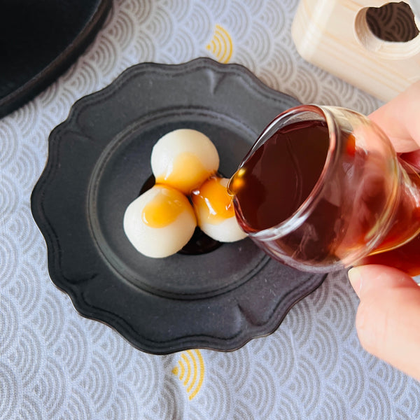 But wait, how is tsukimi dango eaten? To make tsukimi dango even more delicious, we recommend you eat it with Mitarashi sauce. This will definitely upgrade the taste of Tsukimi Dango. Mitarashi sauce is made mainly from shoyu, but it also includes sugar and mirin, so you can enjoy the balance of sweetness and saltiness at the same time. There is no doubt that you will become addicted to the combination of chewy dango and sweet-salty mitarashi sauce! Stay tuned to learn how to make this seasonal Japanese dessert at home, and how to properly serve it.