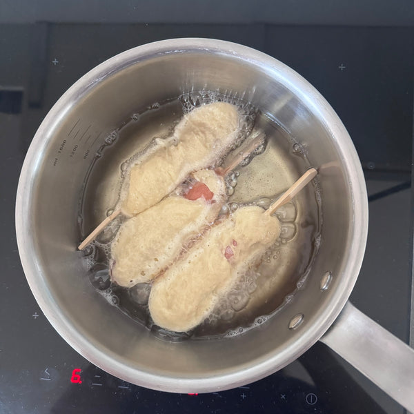 One of the challenges of making the perfect American corn dog recipe is preventing a soggy batter. To avoid this, make sure to thoroughly dry the hot dogs before dipping them in the batter. Also, ensuring the oil is at the right temperature (about 175-190°C or 350-375°F) prevents excess oil absorption, keeping the exterior crisp.