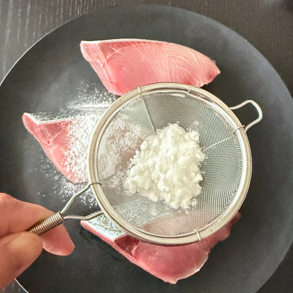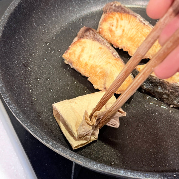 Dipping into hot water – prepare a bowl of hot water and dip the yellowtail fillet for a few seconds. Transfer immediately to cold water, remove any dirt with fingers, then pat dry with paper towels. This method also tightens the flesh, preventing the fish from breaking while cooking.