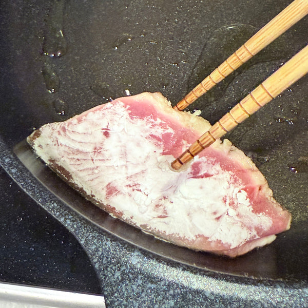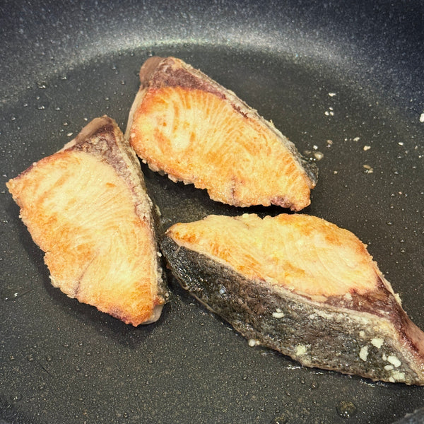 Once the fishy smell is removed, lightly coat the fillet with potato starch or flour. This prevents the fish from drying out and helps the seasoning cling better, enhancing the flavor. Cooking thoroughly is important, but avoid overcooking as the fish gets firmer. Follow the exact cooking time and methods below to achieve perfect buri teriyaki.