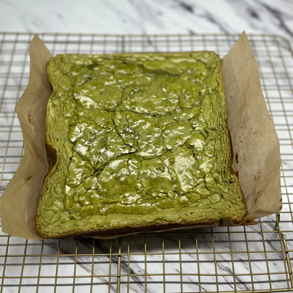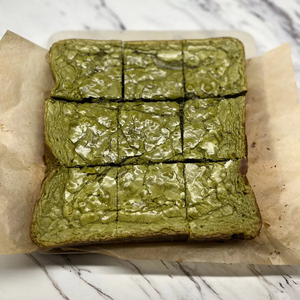 Start with the comforting embrace of a classic fudge brownie – the kind that’s dense, chewy, and indulgently rich. To bring the dreamy dessert to life, we delicately sift matcha into the brownie batter, creating a mesmerizing dance of white chocolate and vibrant green swirls. The result is not just a treat for your taste buds but a feast for your eyes, with each bite offering a visual celebration of the union of white chocolate and matcha.