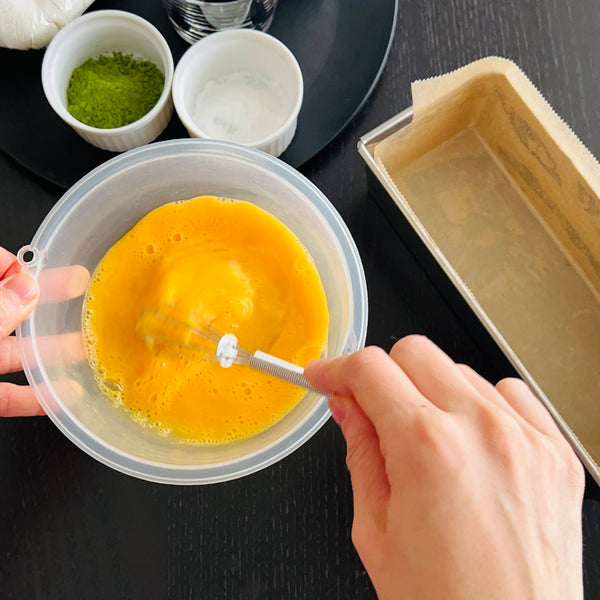 Another option is a vegan version. To make a vegan matcha pound cake, substitute regular sugar with beet sugar, butter with vegetable oil (such as refined sesame oil, which is almost odorless), and milk with soy milk, while omitting the eggs. Adding almond flour will help enhance the flavor.