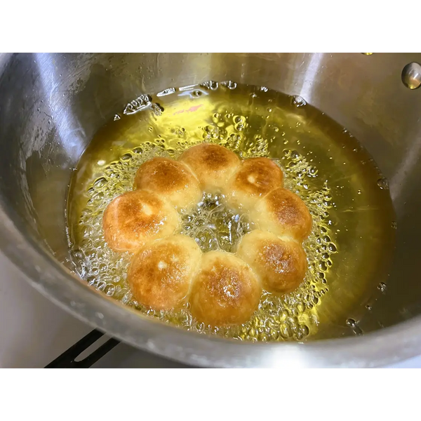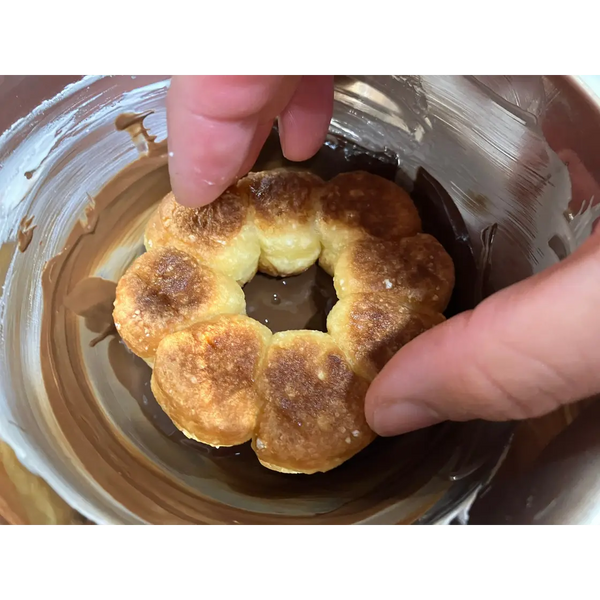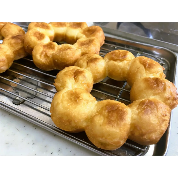These mochi-like donuts, also called Pon-de-rings, are made from 8 small dough balls connected together in a ring. Biting into one reveals a delightful contrast: a lightly crisp outside with a chewy, satisfying inside.