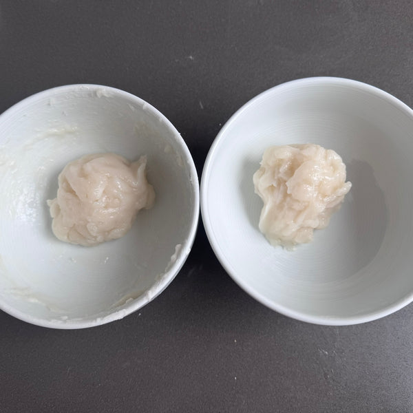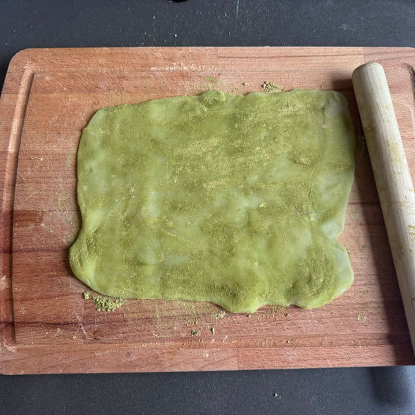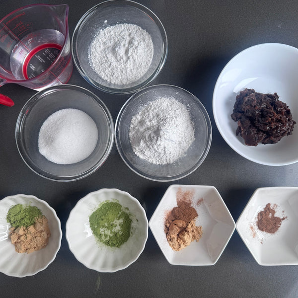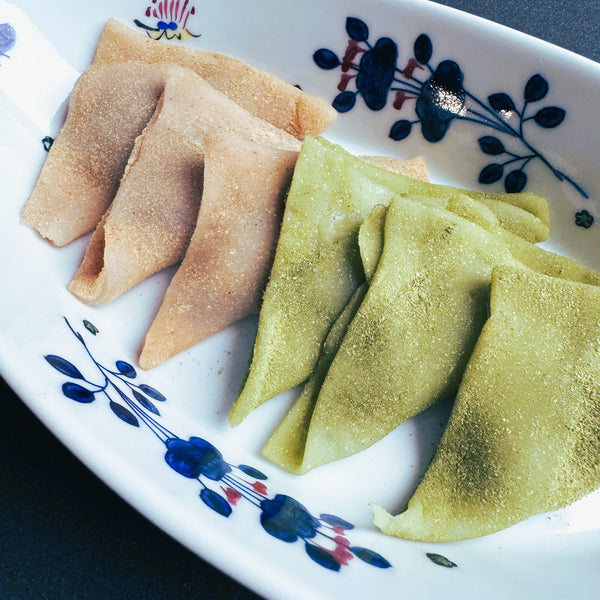 To achieve the ideal texture for nama yatsuhashi, both joshinko and shiratamako (types of rice flour) are used. Each flour contributes a unique quality that helps create dough that is soft, chewy, and smooth, reflecting the refined techniques of Kyoto’s traditional sweets.