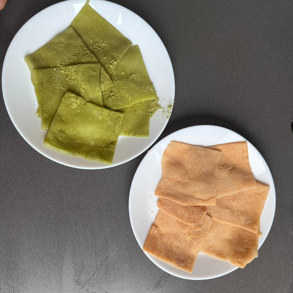 The word “nama” means “raw” in Japanese, indicating that nama yatsuhashi is the unbaked version of this sweet. Instead of being baked until crisp, the dough is steamed, rolled out, and cut into thin rectangular sheets. This process creates a delicate, silky softness that gives nama yatsuhashi its signature bite and makes it especially appealing to those who enjoy gentle, understated flavors.