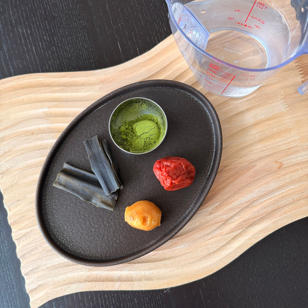 The Japanese-inspired weight loss drink typically includes matcha, umeboshi (pickled plum), ginger, and kombu seaweed. You can also add honey, lemon, or yuzu juice to taste for extra flavor.