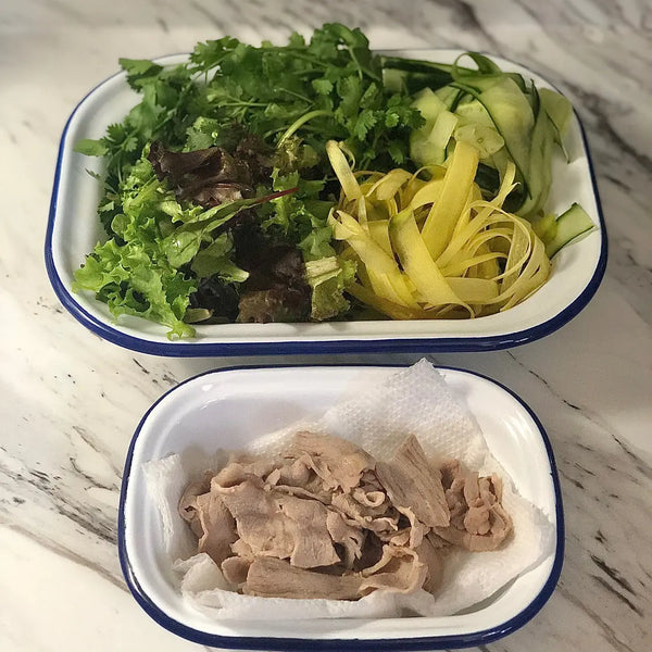 Picture a Shabu Shabu salad, inspired by the Japanese hot pot technique. This salad is all about diverse textures, featuring delicate pork slices briefly blanched in boiling water, alongside an array of crisp veggies like lettuce, cucumber, and radish. What makes it truly special is your ability to customize it with your favorite veggies, turning it into a canvas of flavors awaiting your creative touch.
