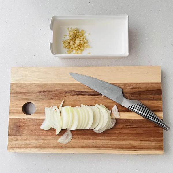 2) Slicing the Onion & Grating the Ginger