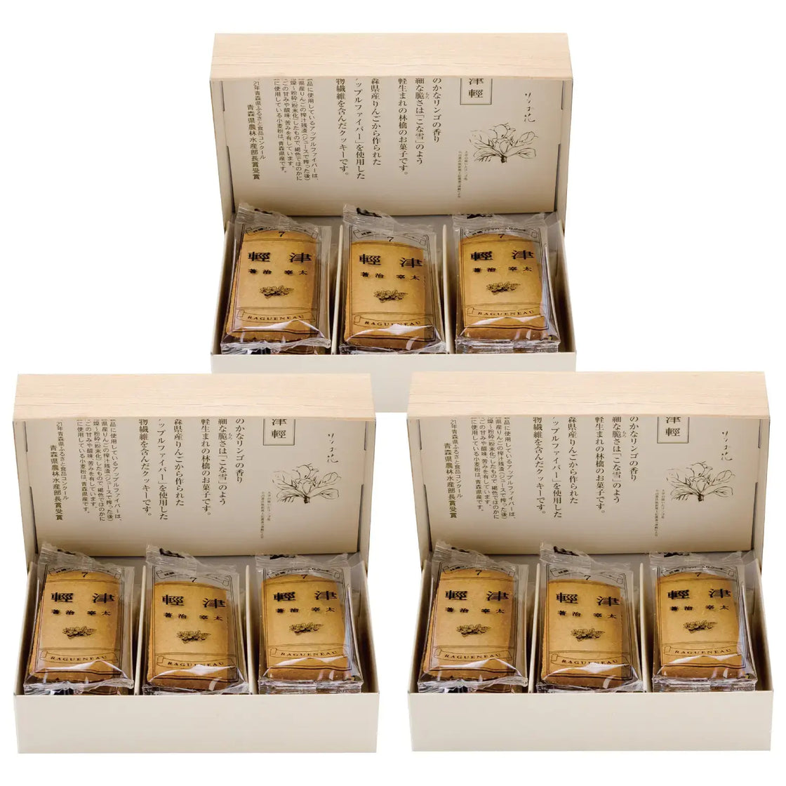 Ragueneau Tsugaru Aomori Apple Fiber Crumbly Cookies (Pack of 3)